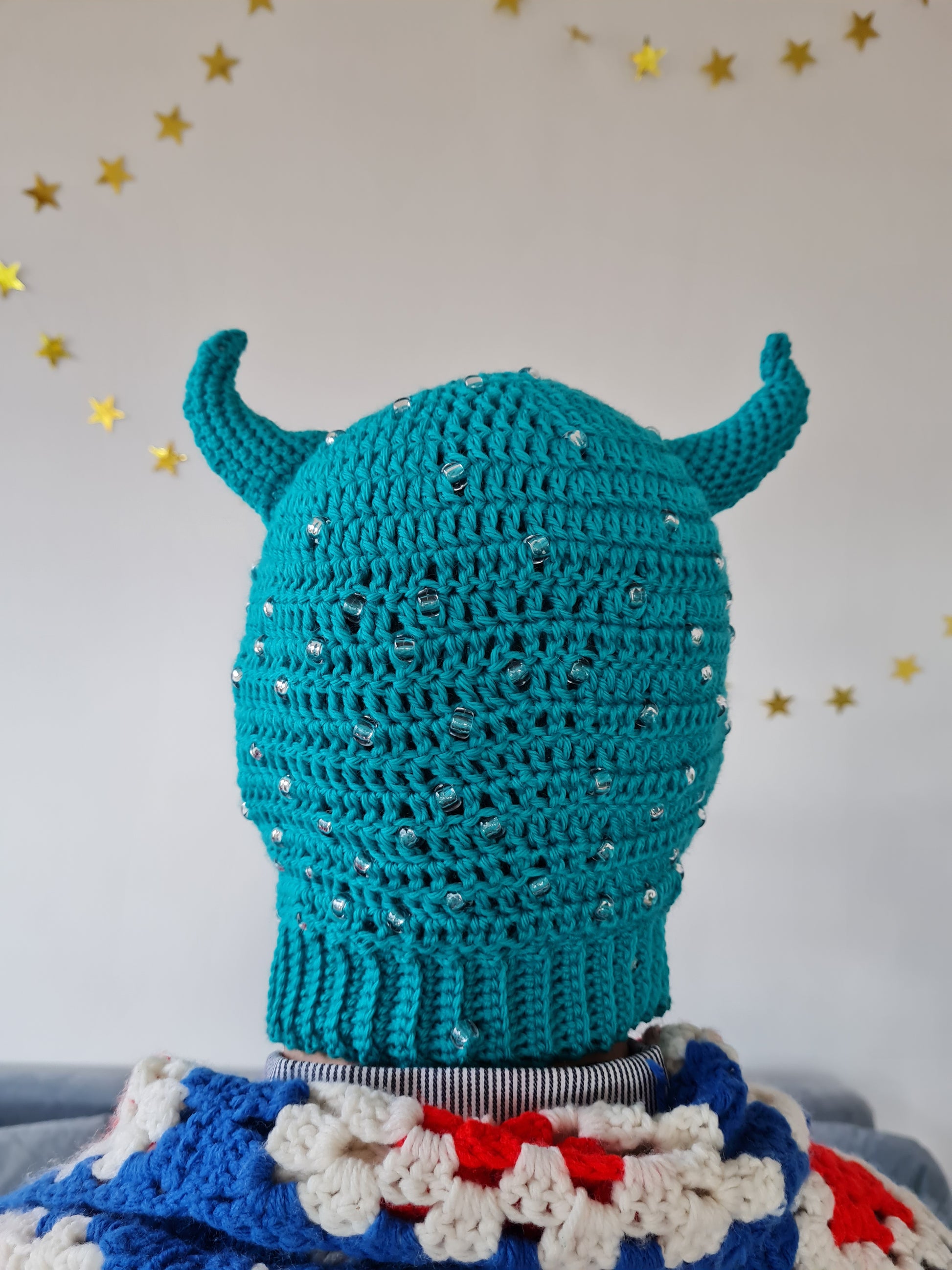 Each balaclava has see-through white beads all over, these will be in a unique pattern on each piece, making each one a lil bit different!