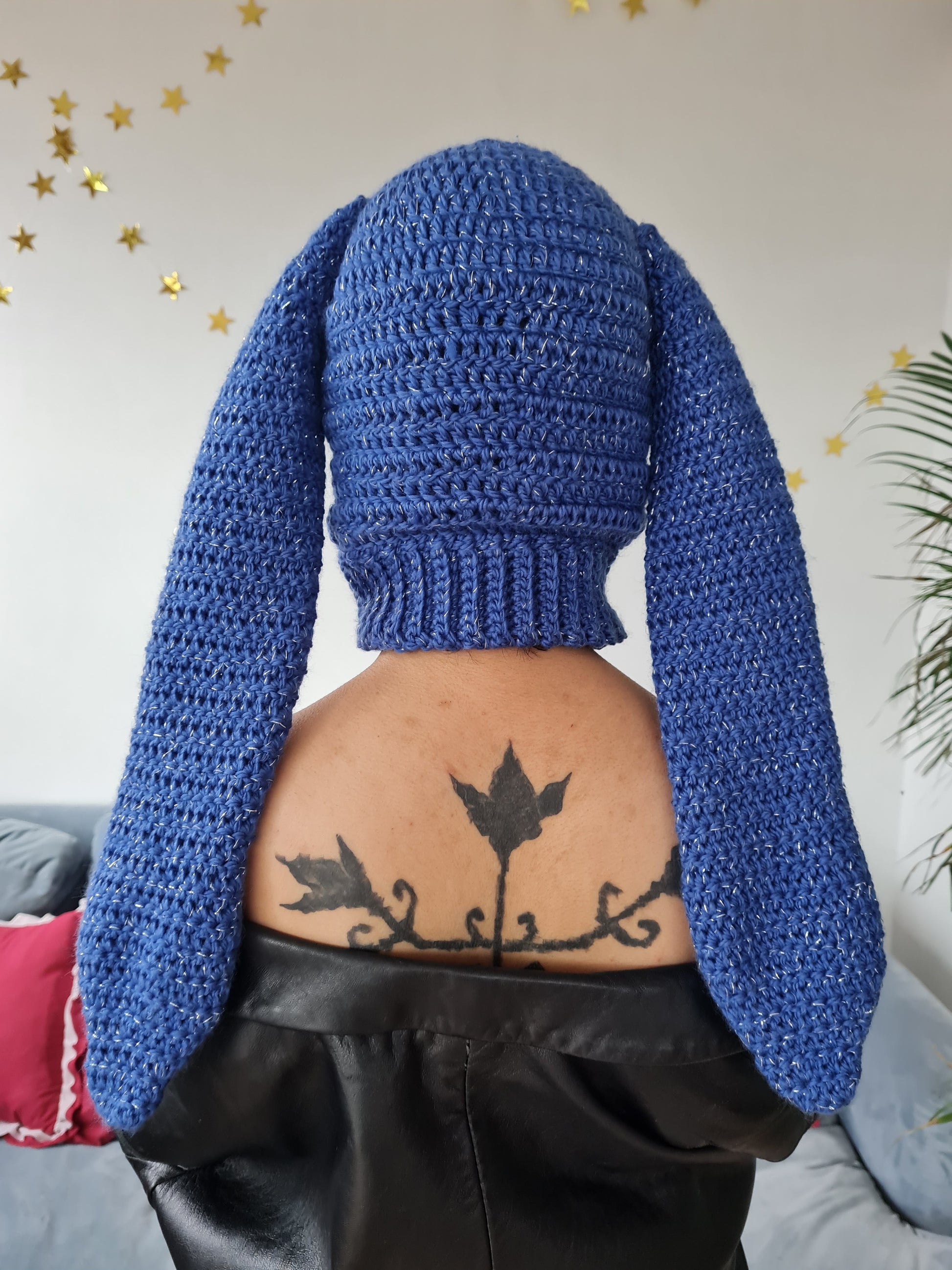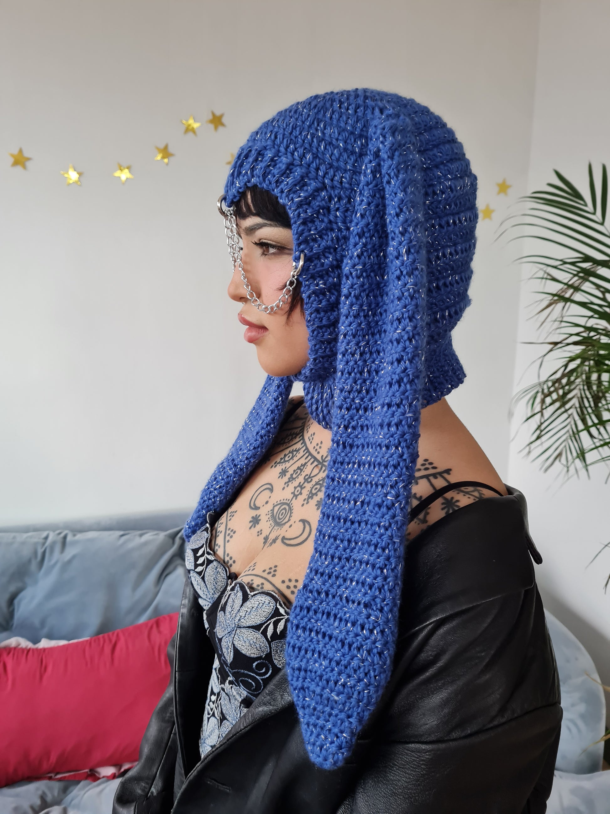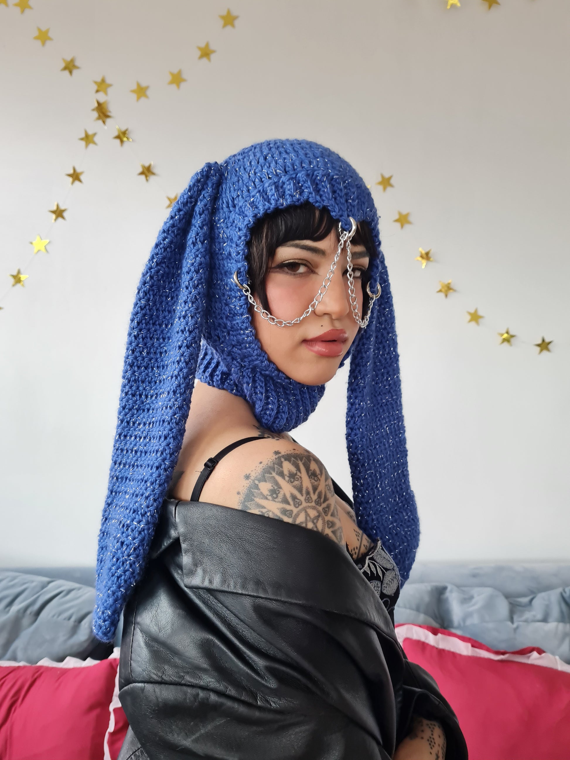 These hoops are removable and can be moved around the Bunnyclava. Wear them across the back or on an ear to create your own look!