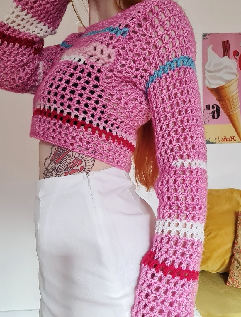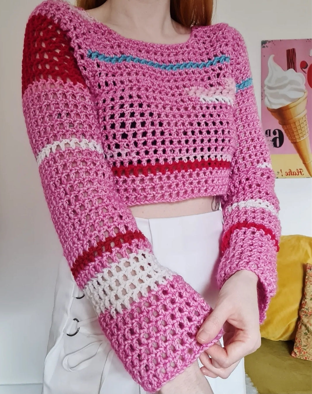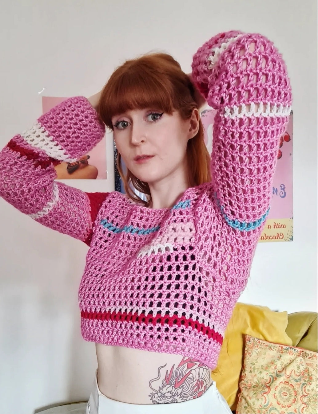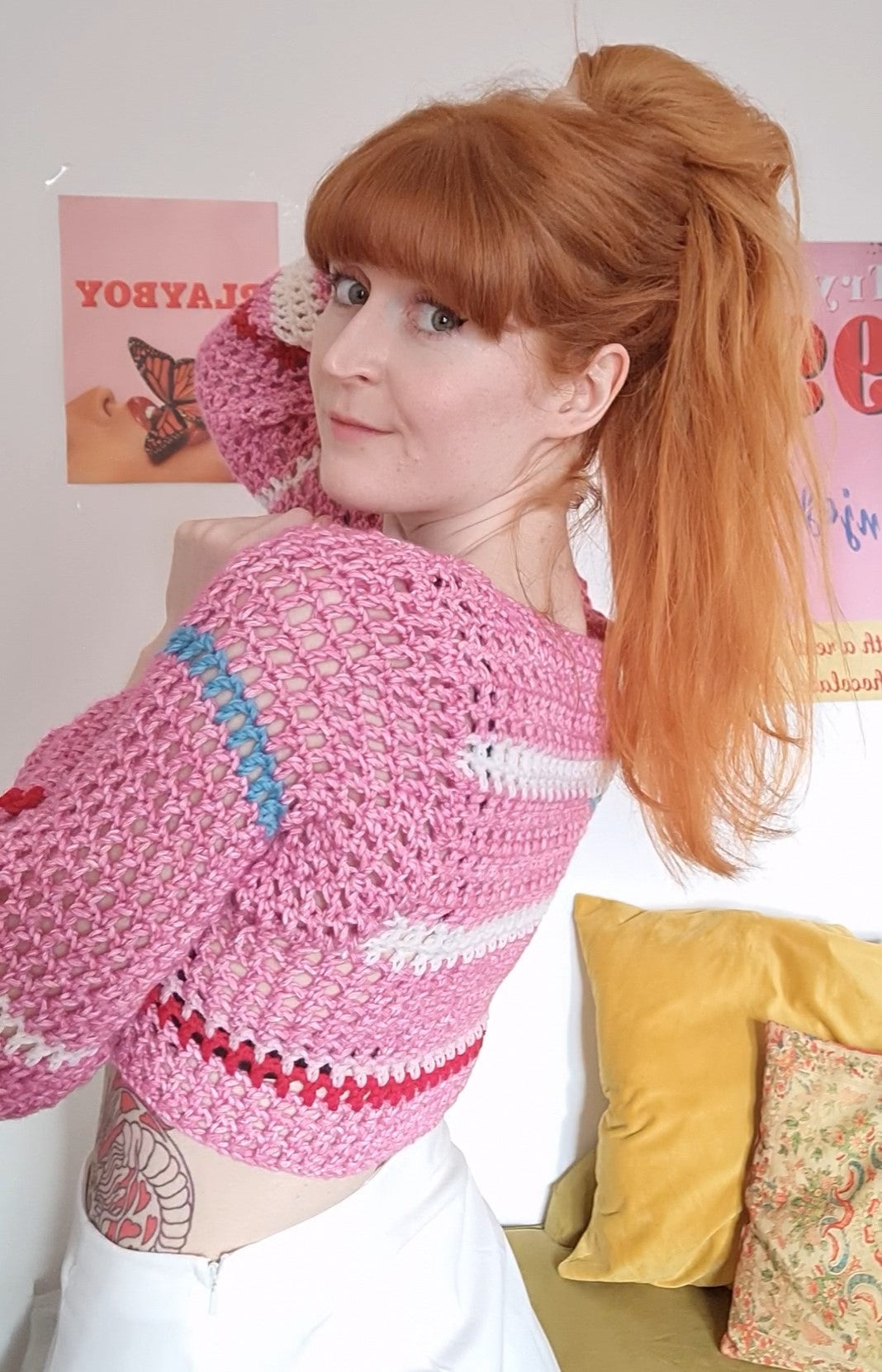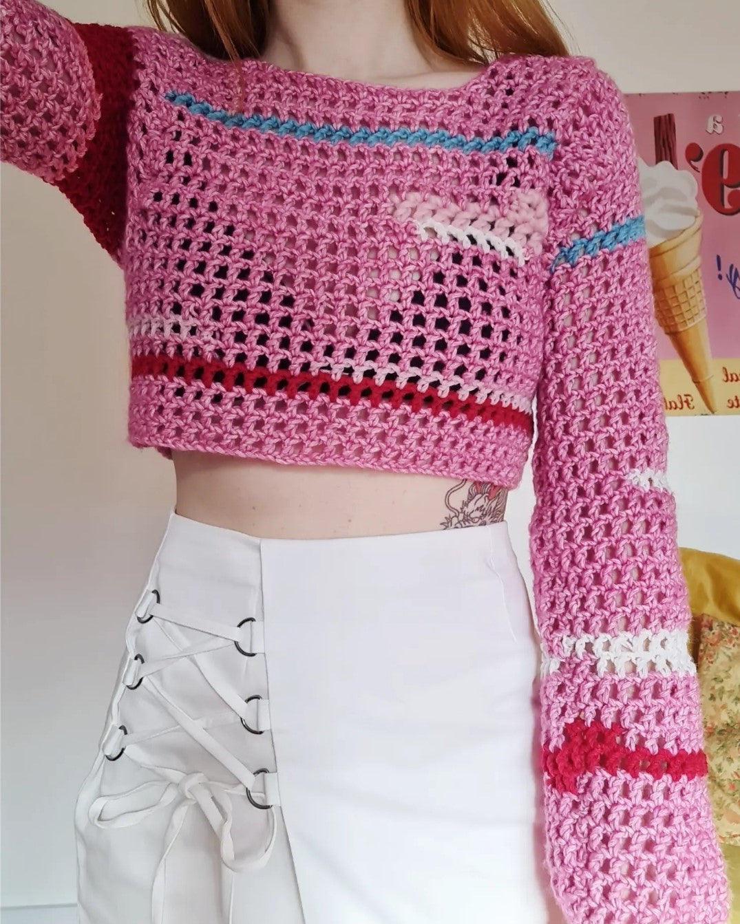 This top is perfect for the spring and summer and is a great project to use up scrap yarn. You can make it as multi-coloured as you like!